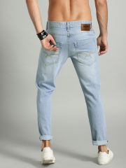 Skinny Fit Mid-Rise Mildly Distressed Stretchable Jeans Light Blue, 28